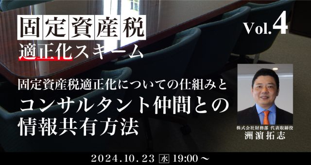 第4回 固定資産税適正化スキーム「固定資産税適正化についての仕組みとコンサルタント仲間との情報共有方法」 (2024/10/15)